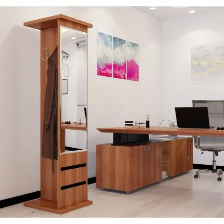 این رختآویز با عرض ۵۰ سانتیمتر، ارتفاع ۱۸۷ سانتیمتر و عمق ۵۰ سانتیمتر، فضای کافی برای آویزان کردن لباسهای کارکنان، کت و شلوار، کت و مانتو و دیگر پوشاک اداری فراهم میکند. ارتفاع مناسب محصول امکان آویزان کردن لباسهای بلند را نیز فراهم میکند و فضای کاری را بهصورت کارآمد سازماندهی مینماید. بهعلاوه، وجود آینه قدی در طراحی این رختآویز، ویژگی کاربردی و مدرن به آن بخشیده و به کاربران اجازه میدهد قبل از خروج از محل کار، وضعیت لباس و ظاهر خود را بررسی کنند.