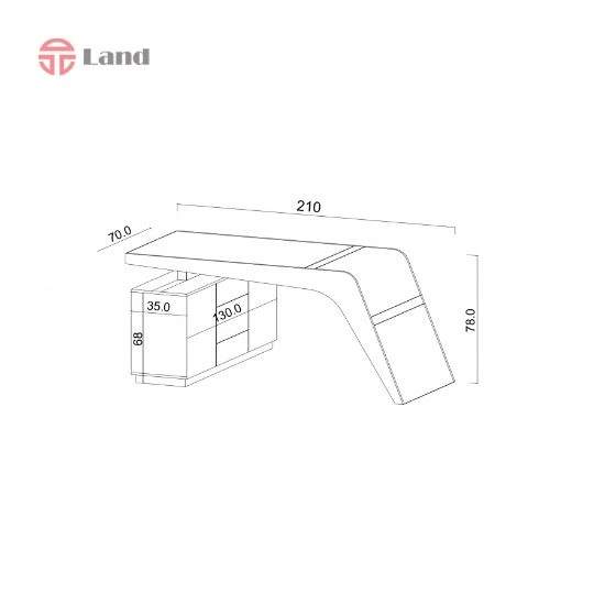 این میز مدیریتی دارای هفت کشوی جادار است که فضای کافی برای نگهداری اسناد، مدارک و لوازم ضروری فراهم می‌کند. طراحی کشوها به گونه‌ای است که دسترسی سریع و آسان به محتویات امکان‌پذیر بوده و نظم محیط کار را به بهترین شکل حفظ می‌کند. ابعاد میز شامل طول ۲۱۰ سانتی‌متر، عرض ۷۰ سانتی‌متر و ارتفاع ۷۸ سانتی‌متر است و سطح کرو به کاربران امکان کار راحت و ارگونومیک را ارائه می‌دهد.
